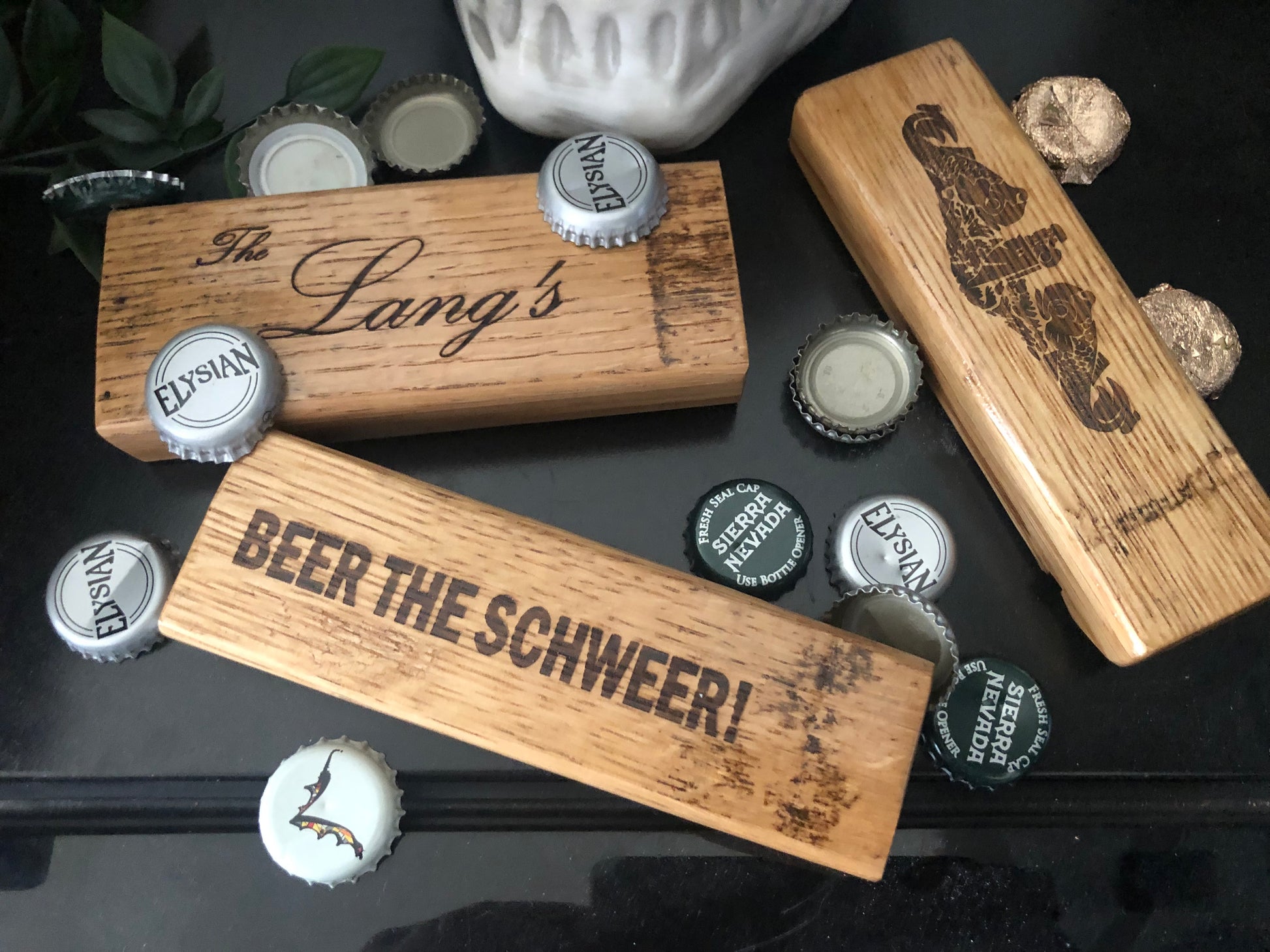 Immerse yourself in the world of beer-drinking elegance and rustic sophistication with our Barrel Stave Beer Opener. Elevate your beer-opening ritual and add a touch of vintage charm to your bar, kitchen, or man cave. Cheers to great taste, style, and the joy of savoring your favorite brews with this extraordinary beer opener!